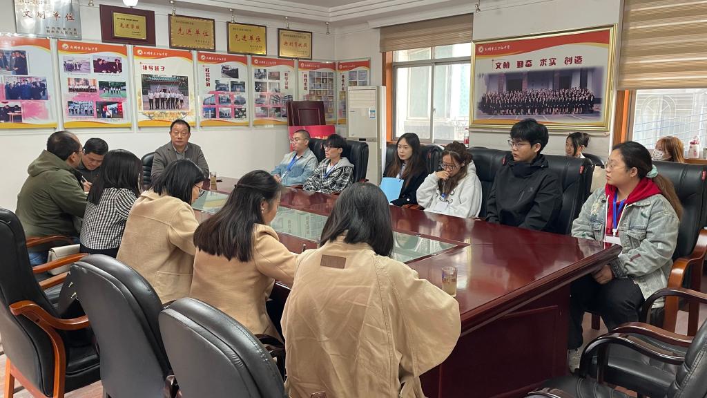 在东方红中学,姜晓靖书记详细介绍了该校的办学性质、办学特色、师生规模以及学生培养情况。在随后的座谈会中,姜书记重点对本院2022级学生的见习情况进行了介绍,对他们的表现给予了肯定。学院党委副书记汤慧珍介绍了8827太阳集团官网的基本办学情况以及专业特色、人才培养等情况,并对太阳官网毕业生就业工作情况、主要优势、就业需求等进行介绍,并表示希望加深与荆州市东方红中学的合作,为毕业生提供更多优质实习、就业的岗位。