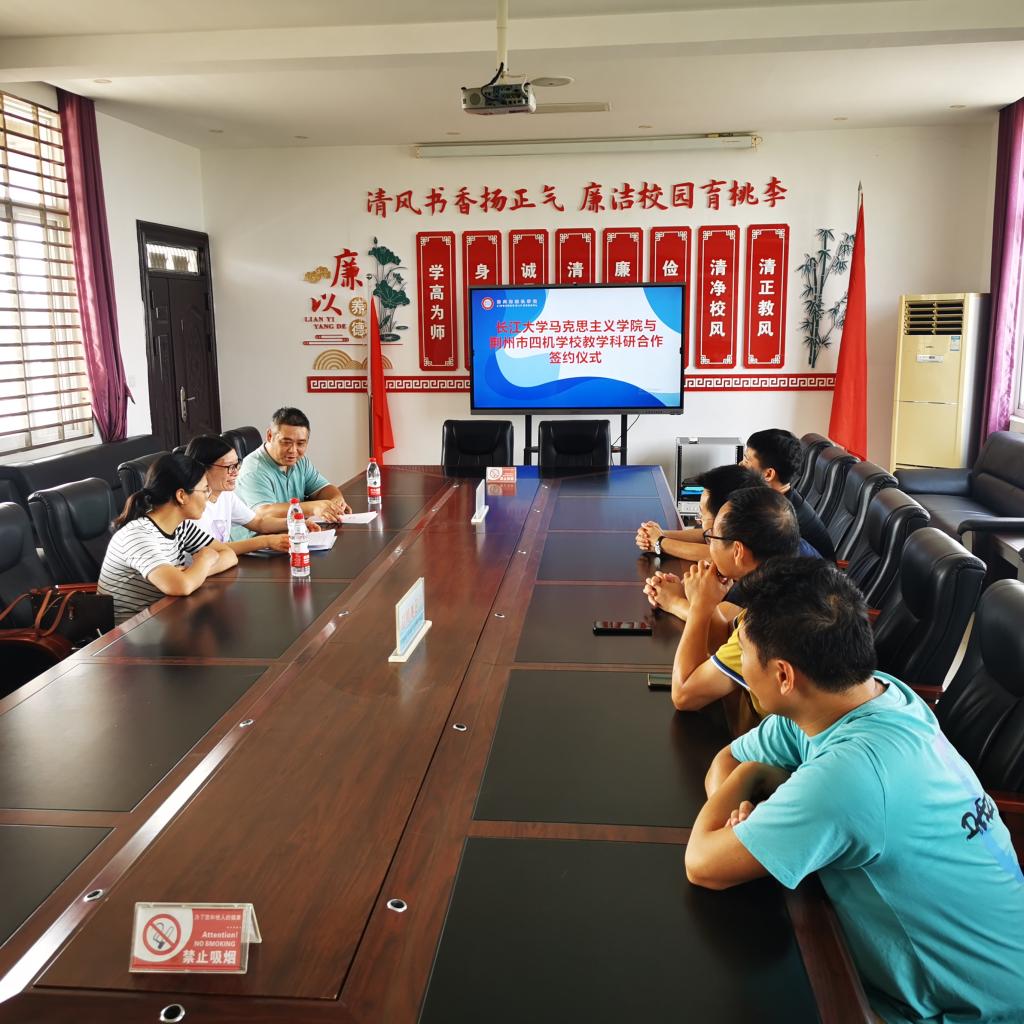 7月14日下午,8827太阳集团官网与荆州市四机学校签订实习基地合作共建协议。四机学校党总支书记邹先锋、校长肖斌、副校长苏荆洲、副校长李昂出席签约仪式。8827太阳集团官网负责教学的副院长张莉、系主任徐络、思想道德与法治课程负责人肖芬蓉出席仪式。